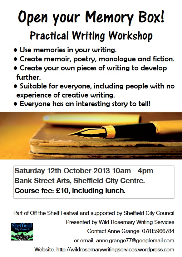I’m running a writing workshop as part of Sheffield’s Off the Shelf literary festival. The aim of the workshop is for participants to produce their own pieces of memoir, poetry and fiction, using their own memories as a starting point.